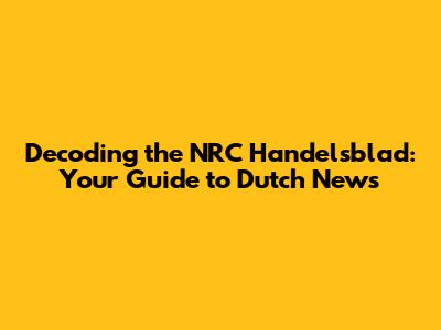Decoding The NRC Handelsblad: Your Guide To Dutch News