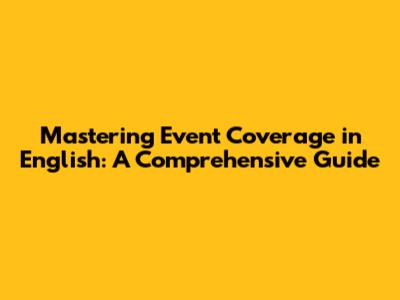 Mastering Event Coverage In English: A Comprehensive Guide