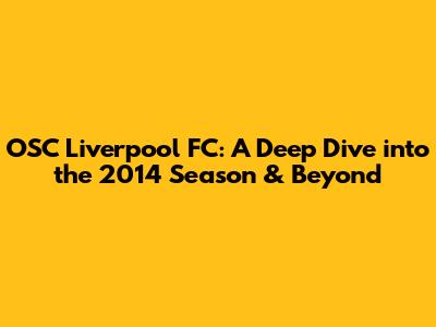 Hey guys, let's dive deep into the fascinating world of OSC Liverpool FC, specifically focusing on the 2014 season and what makes this club a special part of football history. We'll explore the club's journey, its key moments, and what made the 2014 season a memorable one. Buckle up, because we're about to embark on a journey through the highs, lows, and everything in between that defines OSC Liverpool FC! Let's get started.